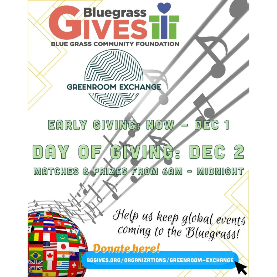 Let’s make this our biggest Bluegrass Gives yet! Thank you for being part of the GreenRoom family.